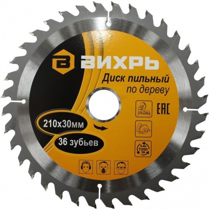 Диск пильный по дереву ВИХРЬ 210х30 мм, 36 зубьев 73/10/4/7
