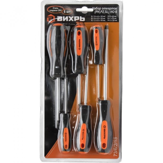 Набор отвёрток ВИХРЬ (PH,PZ,SL), 6 шт 73/6/2/13