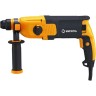Электрический двигатель мощностью 750 Вт расположен горизонтально, его мощность составляет 750 Вт. Перфоратор можно использовать в режиме удара, сверления с ударом и обычного сверления отверстий максимальным размером 13/26/40 мм в стальной, бетонной, деревянной поверхности. Функция удара (2,8 Дж) позволяет легко справиться с твердыми породами, бетоном, кирпичом. Частоту ударов можно подбирать в зависимости от типа материала в диапазоне от 0 до 5200 уд/мин. Частота вращения также может регулироваться 0-1100 об/мин. Реверсный ход упростит высвобождение застрявшей в поверхности оснастки. Для удобства использования корпус оснащен прорезиненной антискользящей ручкой, ограничителем глубины отверстия, блокировкой выключателя, защитой от проникновения пыли.