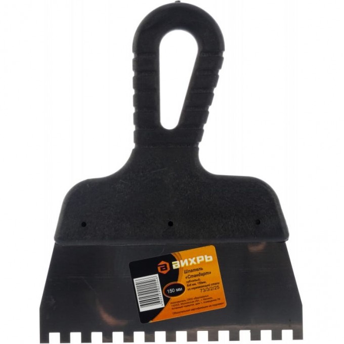 Шпатель зубчатый ВИХРЬ пластиковая рукоятка 6х6 мм, 150 мм 73/3/2/25