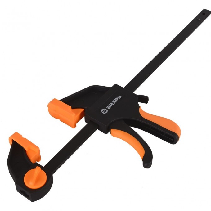 Быстрозажимная струбцина Вихрь 300x60 мм 73/9/5/5 представляет собой инструмент пистолетной формы и предусматривает наличие рычажного быстрозажимного механизма. Это делает эксплуатацию струбцины легче, позволяя работать с ней одной рукой. Конструкция инструмента позволяет использовать его также в режиме распора.