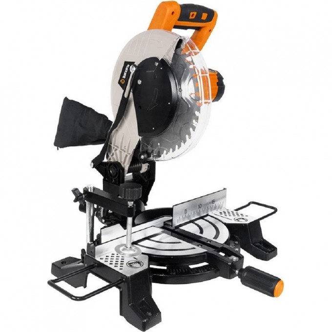 Устройство оснащено прямым приводом, к которому крепится пильный диск. Он легко справляется с распилом древесины и композитных материалов на ее основе, при установке другой оснастки торцовочная пила может применяться для пиления тонких металлических труб, профилей. Распил можно производить под прямым углом или с любым произвольно выбранным наклоном, а также делать пропилы разной глубины. Повышению точности пиления способствует наличие лазерного указателя. Для обеспечения безопасности оператора на установке предусмотрено наличие защитного кожуха и возможность блокировки вала при замене пильного диска. В комплектацию входит тканевый пылесборник, в котором автоматически собираются древесная стружка и другие отходы. Устройство можно совмещать со строительным пылесосом, что также обеспечит поддержание чистоты в мастерской.